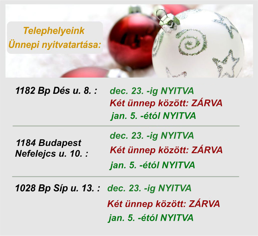 Karácsony és Újév között mind a 3 telephelyünk ZÁRVA Nyitás január 5.-én hétfőn!